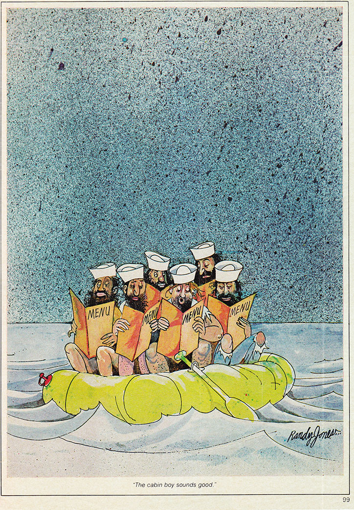 Randy came of age artistically in 1970s Toronto and I always felt a certain SCTV sensibility reflected in his comic strips, a self-effacing Anglo-Canadian bent. He and his collaborators had obviously absorbed some of the Monty Python aesthetic as well, and applied finely-honed wit to entertain readers of numerous publications including Maclean’s, Twilight Zone, Playboy, and Penthouse.