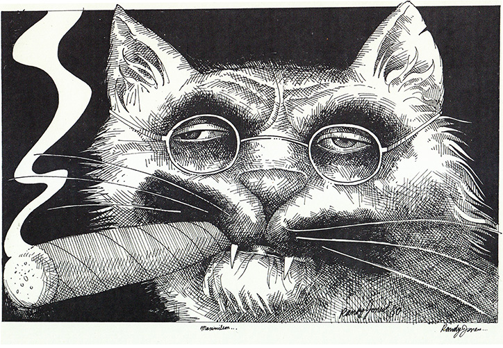 At his peak, Randy was the busiest illustrator I knew with newspapers, magazines, book publishers, ad agencies, and galleries among his clients. One of his longest-lasting and most fruitful gigs was The Inner Circle show each year in NYC. Here’s more about the annual event –– I can’t imagine how they’ll get on without his riotous programs and projected sets.