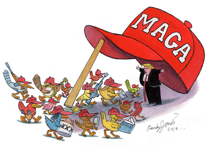 Randy Jones was that rarest of combinations, the most talented artist in the room and the nicest guy. His cartoons were always funny, smart and well-crafted –– the envy of anyone who plied the trade –– and he was unfailingly thoughtful and kind –– his politeness startling, even for a Canadian. Natural warmth and good humor suffused his work, but a sense of the absurd along with extraordianary technique delivered it from feeling safe. He told me his favorite film was Dr. Strangelove and he could deliver sharp satire, but there was at all times a humanity to it and a sense of fun.
